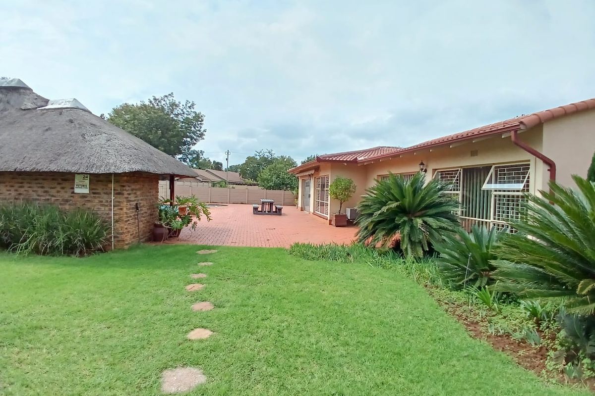 Additionally, you get a borehole with an irrigation system, a sparkling swimming pool, an alarm system and cctv cameras, servant quarters with an outside toilet, and a lapa with a built-in braai.