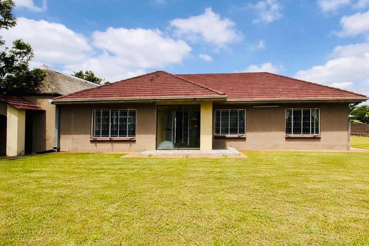 Entertainer's family retreat in Three Rivers, Vereeniging, ideal for indoor-outdoor living with lapa and braai, large garden and multiple living areas — three bedrooms, one bathroom, three garages.