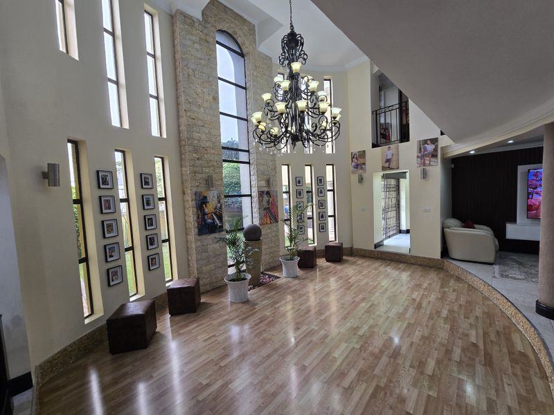 Coastal living in Ballito with expansive entertaining spaces, sweeping spiral staircase and sea-view main suite. Separate flatlet, lift, solar backup and parking for seven; six bedrooms, six-and-a-half baths.