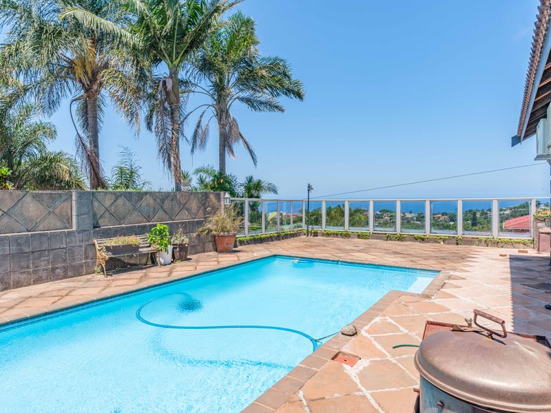 Coastal entertainer's dream in Ballito with panoramic sea views from an expansive patio, adaptable open-plan layout ideal for luxury conversion or multi-unit use — 4 beds, 3 baths, 2 garages.