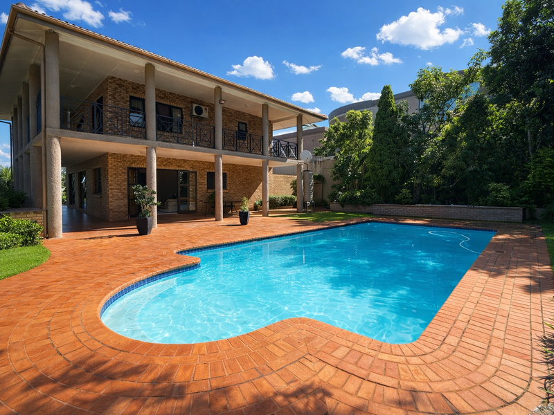 Entertain effortlessly in a private tropical oasis, set in a leafy neighbourhood with modern open-plan living, a rock-finished pool and covered braai patio, with four bedrooms and four bathrooms.
