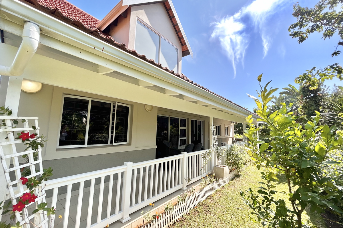 Relaxed family living in Manor Estate — three-bedroom, two-bath home minutes from Ballito CBD, beaches and 15-minute King Shaka access, with covered patio, private garden and built-in braai.