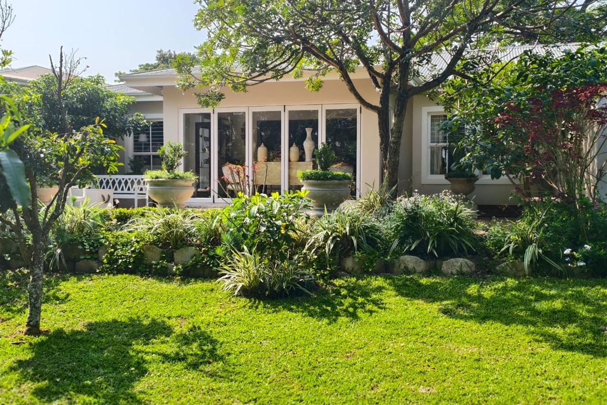 Entertainer's retreat in Shortens Country Estate, minutes from Ballito and the N2, with glass stacking doors to a covered patio and built-in braai. Three bedrooms, two bathrooms, double garage.