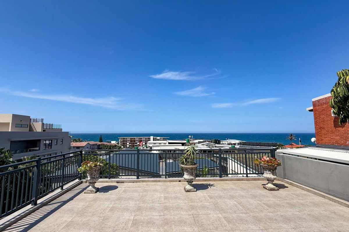 Coastal entertainer's dream in Ballito with panoramic sea views from an expansive patio, adaptable open-plan layout ideal for luxury conversion or multi-unit use — 4 beds, 3 baths, 2 garages.