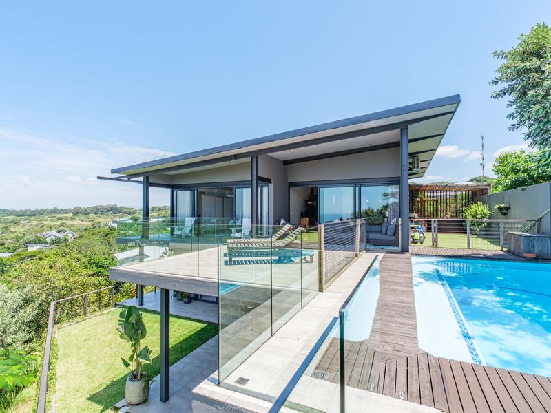Relaxed North Coast living in exclusive Dunkirk Estate with panoramic sea views and private beach access; dual-home layout, pool and garden, plus five bedrooms and covered parking.