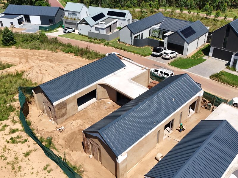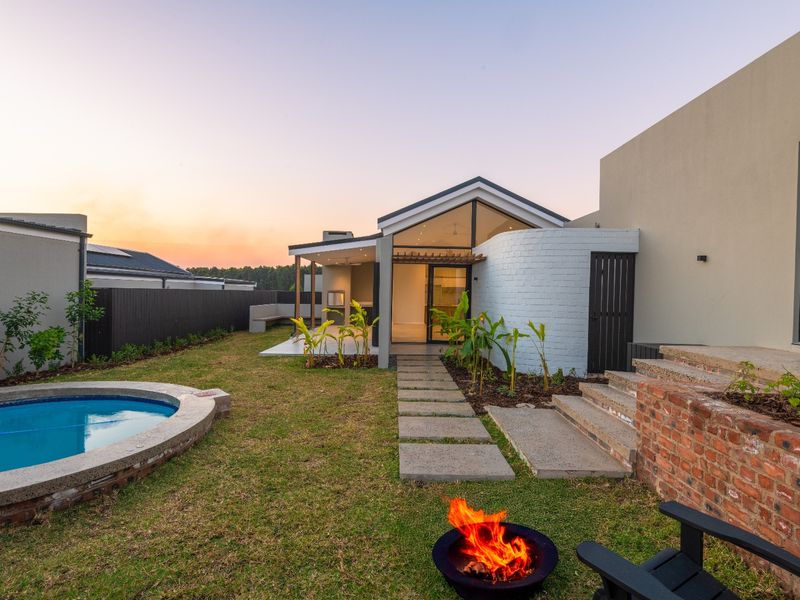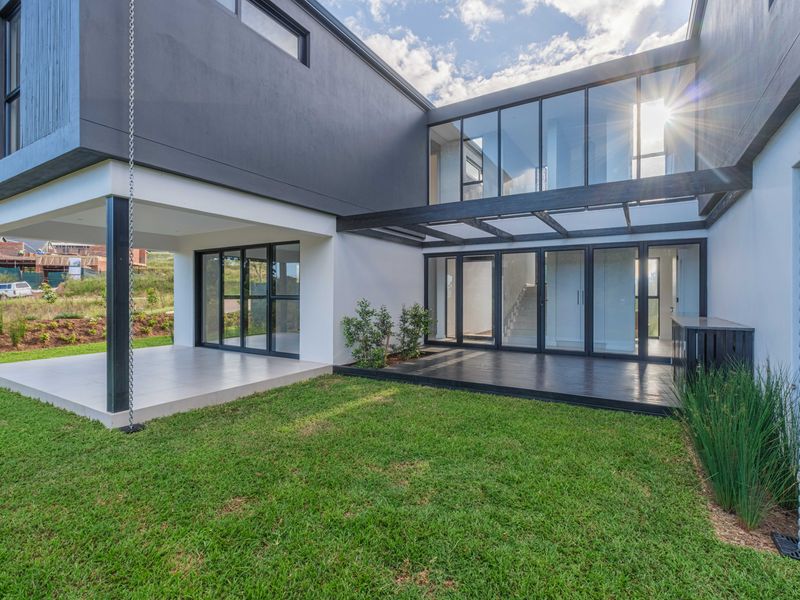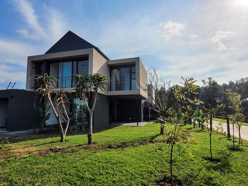 Coastal living in Elaleni Lifestyle Estate with private Beach Club and forest trails. Glass-and-steel open-plan home with modern kitchen, covered patio and secluded lawn; four en-suite bedrooms.