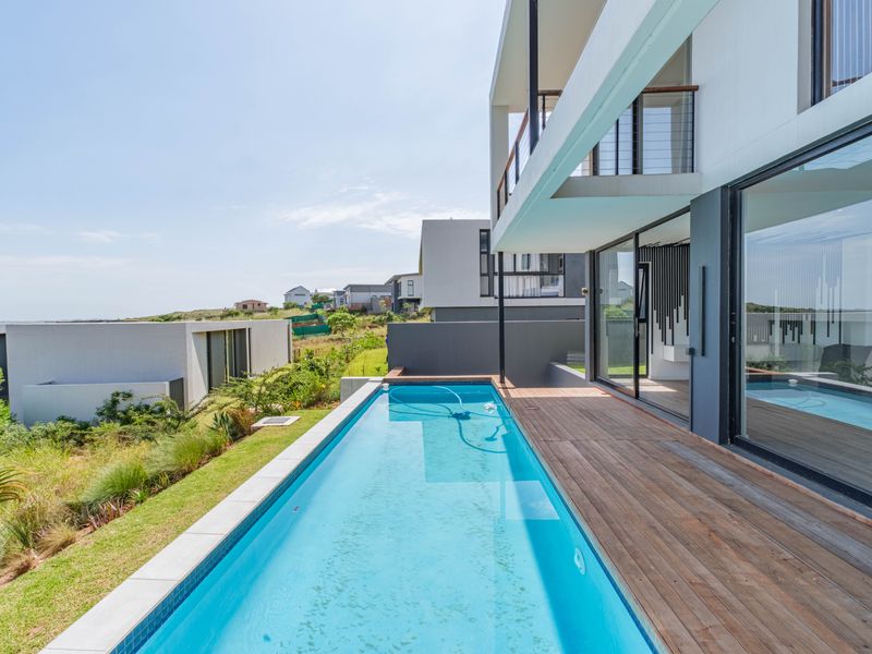 Relaxed coastal estate living in Seaton Estate on the North Coast, with a modern Smeg kitchen, covered patio and built-in braai overlooking pool and fire pit; four en-suite bedrooms.