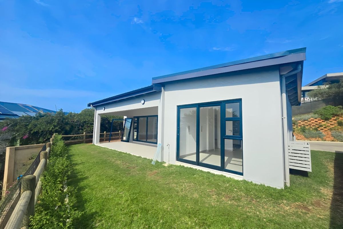 Coastal retreat in gated Ocean on Main, Shakas Rock — light-filled open plan with fitted kitchen, garden and ocean views. Three bedrooms (main ensuite), double garage.