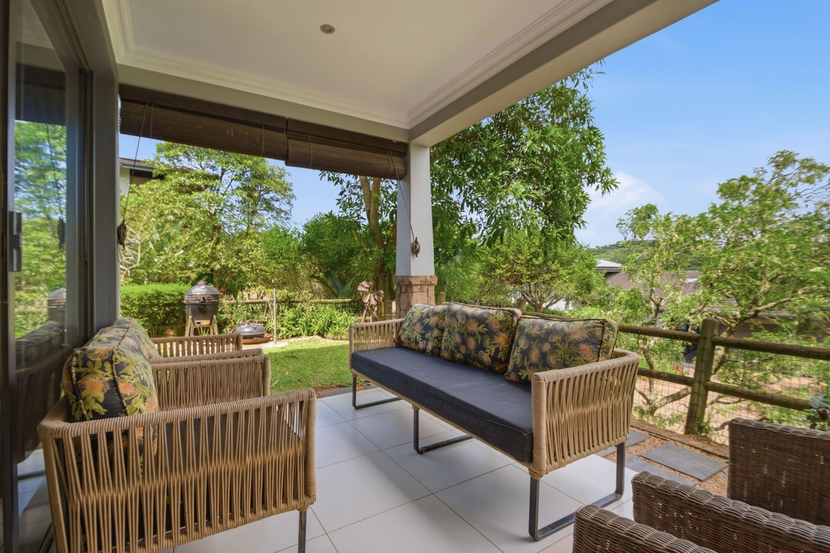 Resort-style, secure living in Simbithi Eco Estate near Ballito and King Shaka Airport, featuring two separate outdoor entertainment areas and single-level convenience — three bedrooms, three bathrooms.