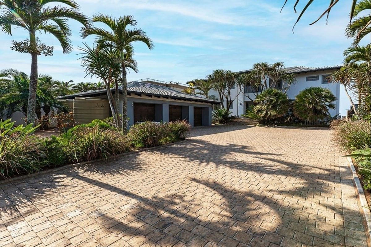 Beachfront entertaining and serene coastal living on Sea View Drive, Tinley Manor — direct beach access with panoramic Dolphin Coast views, six bedrooms and six bathrooms.