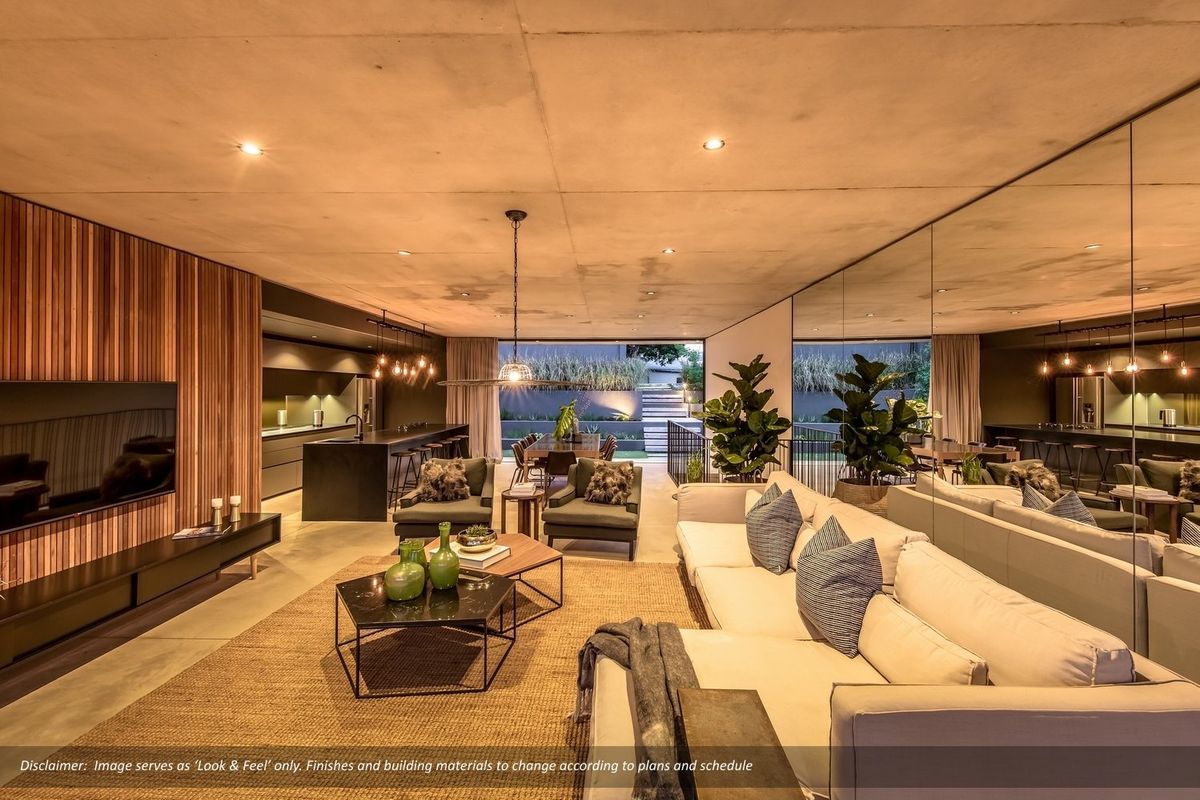 Three generously sized bedrooms, with their respective en-suite bathrooms, are located downstairs, each overlooking a manicured, landscaped and very private garden. The bedroom windows run the full length of the wall, illuminating the space, adding to its modern sophistication, airiness and charm.