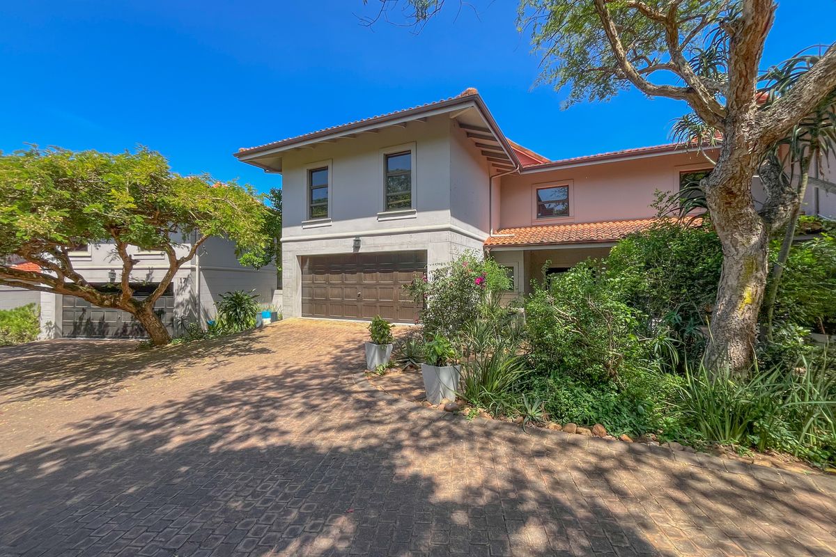 Resort-style coastal living in Zimbali with beach, golf and trails; open-plan townhouse with modern kitchen, covered braai patio and green-belt views — four bedrooms, 3.5 baths, double garage.
