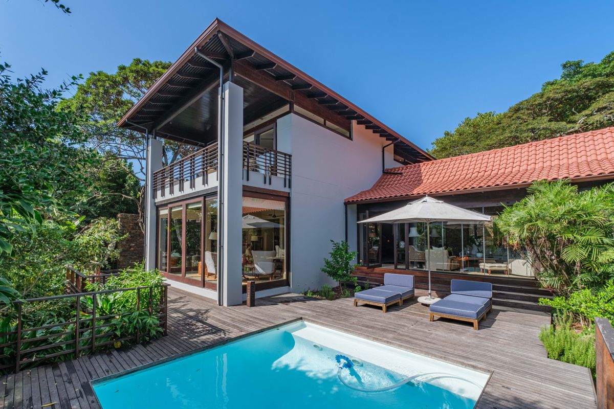 Resort-style coastal living in Zimbali Coastal Estate, moments from Ballito — expansive indoor‑outdoor flow capturing panoramic estate views. Four en-suite bedrooms and three covered parking.