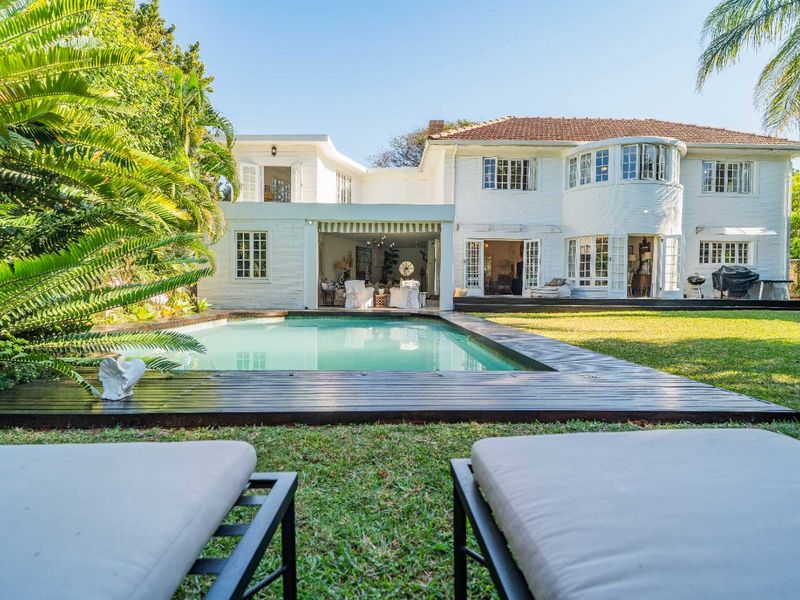 Entertainer's paradise in sought-after Durban North with resort-style pool and pizza-oven deck, income-generating flatlet by the pool, and seven en-suite bedrooms for flexible family living.