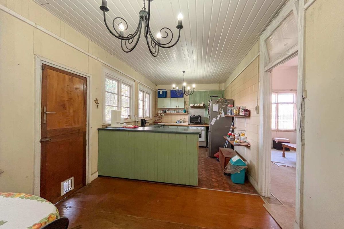 Two-bedroom, one-bathroom property on 977 sqm with garage and parking options, ideal for renovation or development.