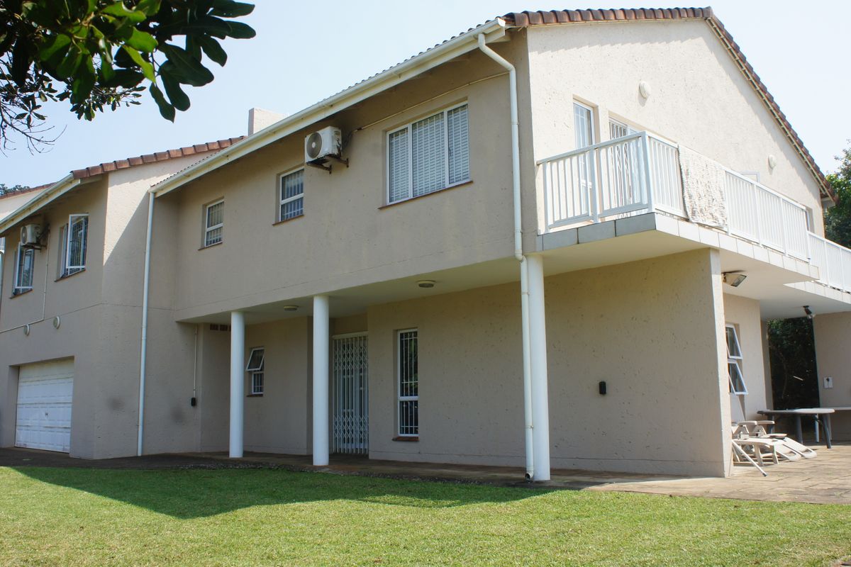 Large grounds, plenty of parking, and lovely lawns to play games, a sparkling pool, outdoor braai area, and a pathway to the beach. A stunning kitchen, granite finishes, separate scullery/laundry area, a dining room which walks out onto the entertainment area at the pool, a lounge, downstairs, to catch "40 winks", away from the upstairs entertainment TV room, and wide passage, airy and bright bedrooms, spacious, with en-suite bathrooms, the master bedroom opening onto a patio which overlooks the ocean. Beautiful screed flooring throughout the home. Lovely and plenty of packing space for all those beach towels, games etc. Double automated garage with door leading into the home, lovely for rainy days or off loading heavy groceries. The garden has beams, and a security alarm to the home.
