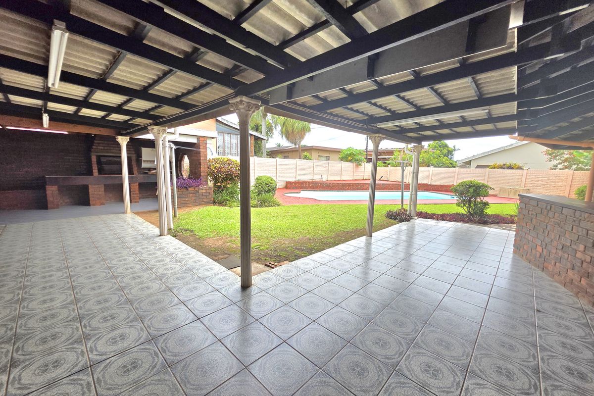 Multiple living areas include two spacious lounges as well as a separate TV room, providing flexibility for relaxation and hosting guests. The outdoor entertainment area features a built-in braai overlooking a sparkling swimming pool, creating the perfect setting for gatherings and leisure.