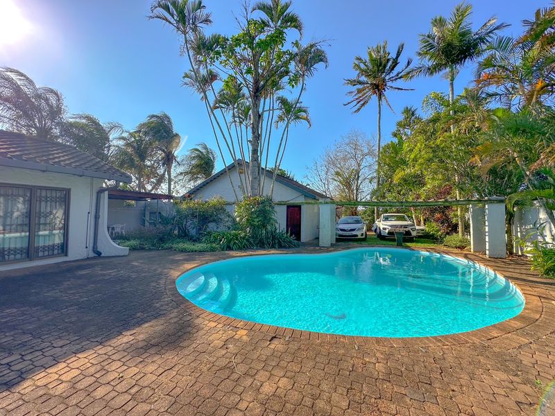 Effortless family entertaining in a peaceful suburban setting with covered patio, built-in braai and pool, plus income-generating 2-bedroom flatlet; main house has four bedrooms and motorized garage.