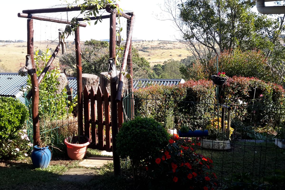 This cosy unit is set in the luscious green Inchanga Park Country Village. It boasts 2 bedrooms, The main bedroom has a private lounge area which overlooks the valley. There is 1 bathroom with a modern shower. The lounge , dining room and kitchen are open plan. The kitchen is fitted with built in cupboards plus a small pantry and a gas stove. Leading off the lounge is a wooden deck which overlooks the valley with a stunning view. At the entrance there is a covered carport for one vehicle and a workshop to the side.