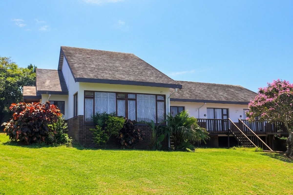 Located in the heart of the scenic Hibberdene coastline, this property offers an unparalleled opportunity for the discerning buyer or investor. Elevated to capture breath-taking 180-degree ocean views, the estate features two complete, independent homes on a single, expansive erf. Its prime position near the beach and local amenities makes it a standout choice for those seeking the quintessential south coast lifestyle. The main residence is designed for coastal enjoyment, featuring an enclosed sunroom and a balcony that spans the upper level, perfect for whale watching and enjoying the sea breeze. The large, level lawn is dotted with mature avocado trees, creating a lush, subtropical sanctuary that is a rarity for the area. This is a property where the location and the generous proportions do the talking, providing a rare footprint in a highly sought-after seaside community.