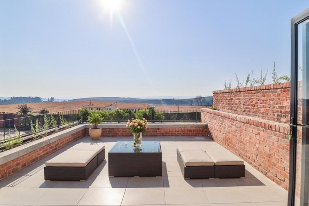 The ground floor features a spacious open-plan layout that effortlessly connects the indoors with two outdoor entertainment areas, perfect for any climate. One outdoor space includes an exclusive-use front garden overlooking preserved grasslands within the estate. The second is an elevated rooftop garden atop the double garage, offering panoramic views of the Drakensberg and Kranskloof mountain ranges—ideal for enjoying stunning sunsets.