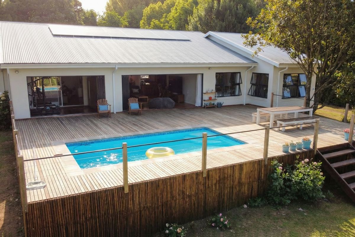 Flexible family living in peaceful Mountain Homes, Hilton — expansive deck and pool for summer entertaining, two income-producing flatlets, solar backup; seven bedrooms, four bathrooms, double garage.