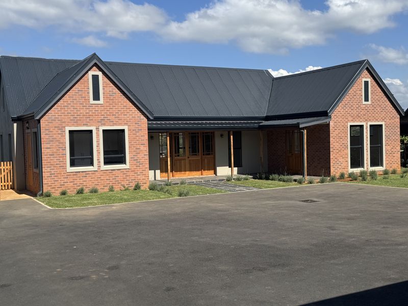 Entertainer's village retreat in St Johns Village, Midlands — open-plan living flows to a veranda with built-in braai and outdoor shower. Four bedrooms, three baths, double garage.
