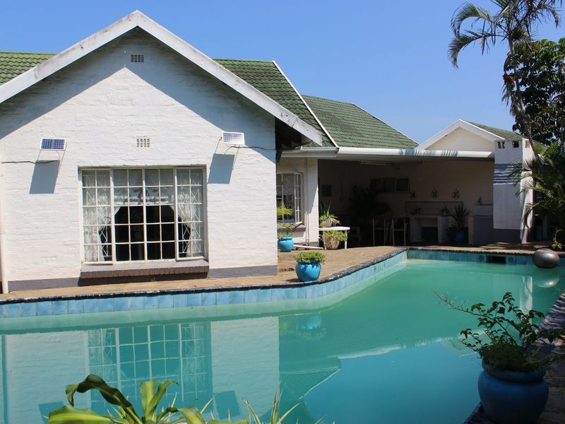 Beachside family living in Warner Beach, under 300m to Baggies Beach and schools; level garden, pool and enclosed braai entertainment area, main house plus 2-bed cottage.