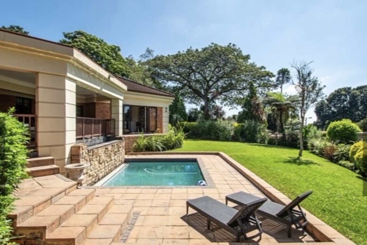 Private, secure estate living in Kloof's sought-after Blue Zone at Clovelly Estate, with seamless indoor–outdoor entertaining, sparkling pool, manicured lawn, and five bedrooms plus double garage.