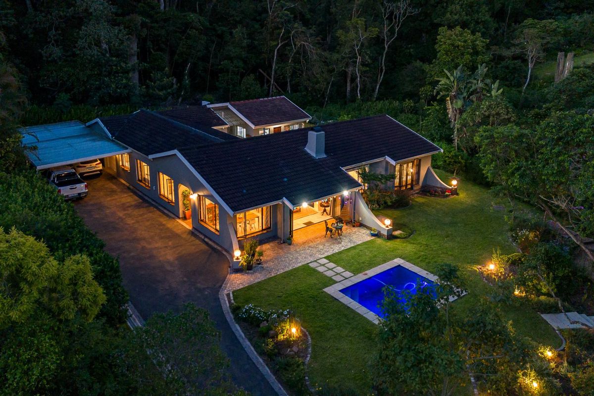 Adding to the home’s versatility is a generous one-bedroom cottage, perfect for a teenager seeking independence, extended family, or a refined work-from-home office. Practicality meets elegance with the addition of two 1000lt Jojo tanks and a backup inverter, double garage, double carport, ample additional parking and staff accommodation. All of this is set within a beautifully landscaped garden, where charming bridges, sweet smelling blooms at every turn and soft ambient lighting to guide your way, creating a setting that feels both romantic and whimsical.
