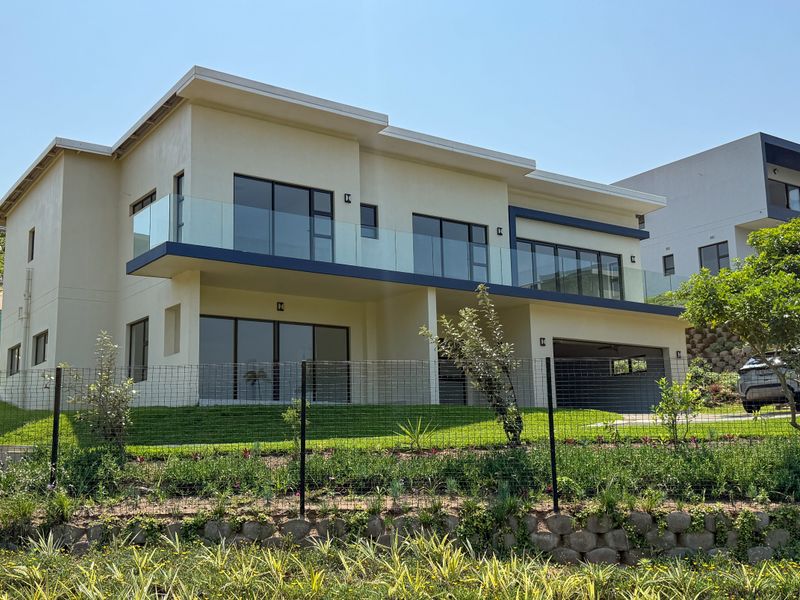Coastal living with panoramic sea views and leafy privacy, minutes from Ballito, Umhlanga and the beach. New double-storey home with three bedrooms, 3.5 baths and two covered parking.