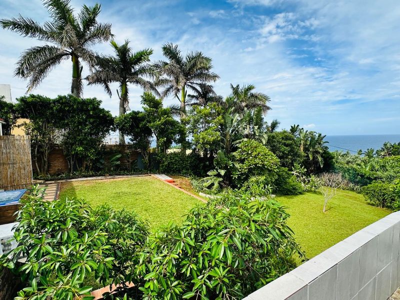 Coastal entertainer's retreat with uninterrupted ocean views, close to King Shaka amenities; full-length balcony, four en-suite bedrooms and double garage.