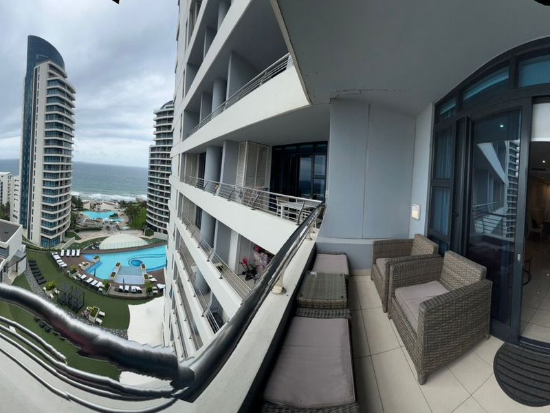 Enjoy coastal living in the heart of Umhlanga, steps from Main Beach and the lighthouse, with a modern open-plan kitchen in a fully furnished two-bedroom, two-bath apartment.
