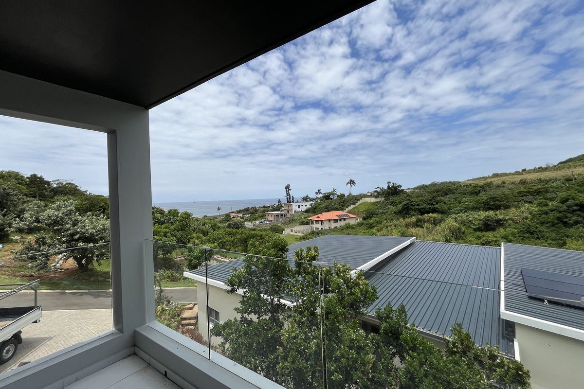 Coastal living with panoramic sea views and leafy privacy, minutes from Ballito, Umhlanga and the beach. New double-storey home with three bedrooms, 3.5 baths and two covered parking.