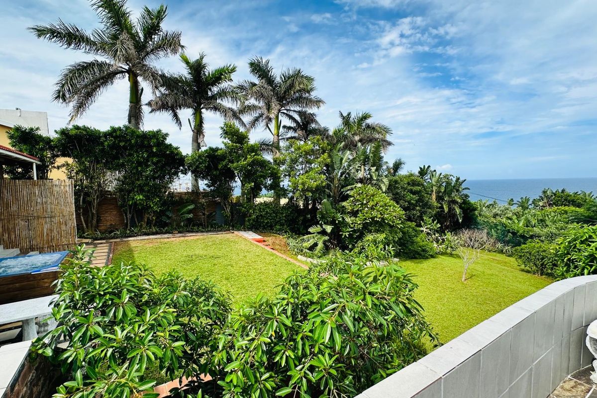 Entertain on a sweeping coastal terrace with uninterrupted breaker and ocean views on the North Coast; expansive patio, manicured garden with 6‑seater Jacuzzi and 20 fruit trees.