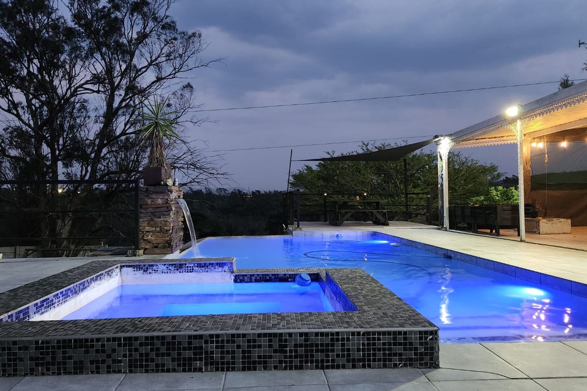 Relaxed family living in Mandeni with a sparkling pool, versatile studio for gym or office, smart-home systems, and three bedrooms, one bathroom, three-car garage.