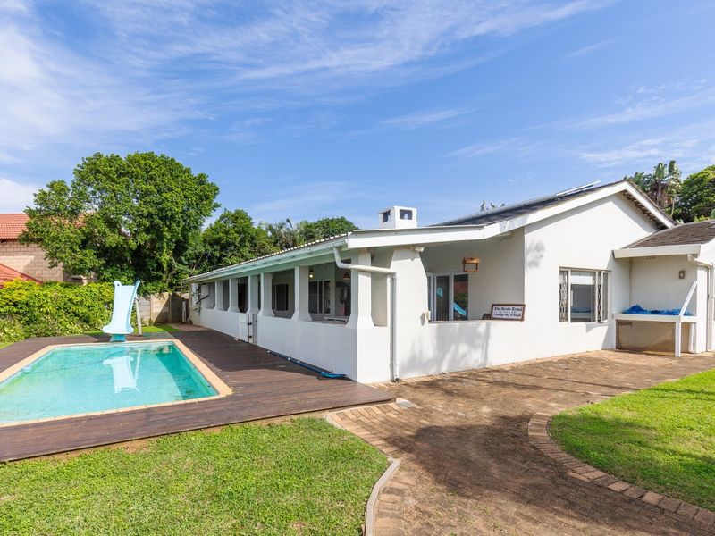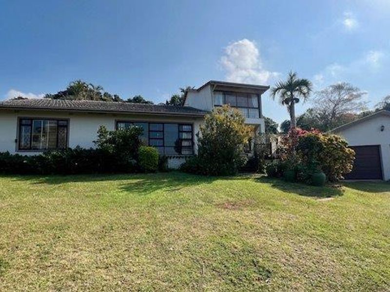 Relaxed coastal living in a quiet Uvongo cul-de-sac, steps from Uvongo Beach and Spar; massive garden with space to add another building — four bedrooms, two bathrooms, undercover parking.