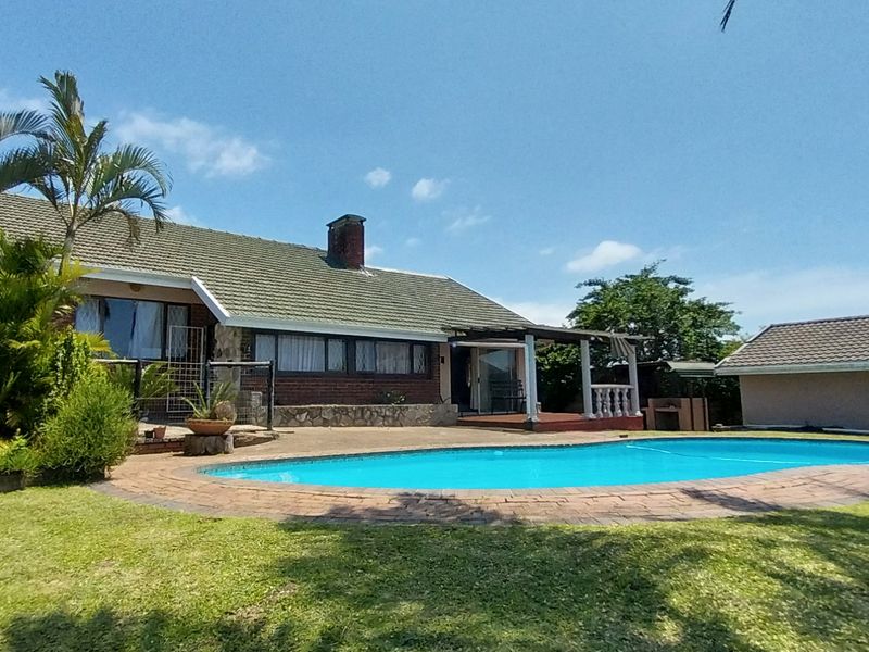 Relaxed coastal living in Uvongo, five minutes to the beach and shops, private undercover patio overlooking a large walled erf — 4 bedrooms, 2 bathrooms.
