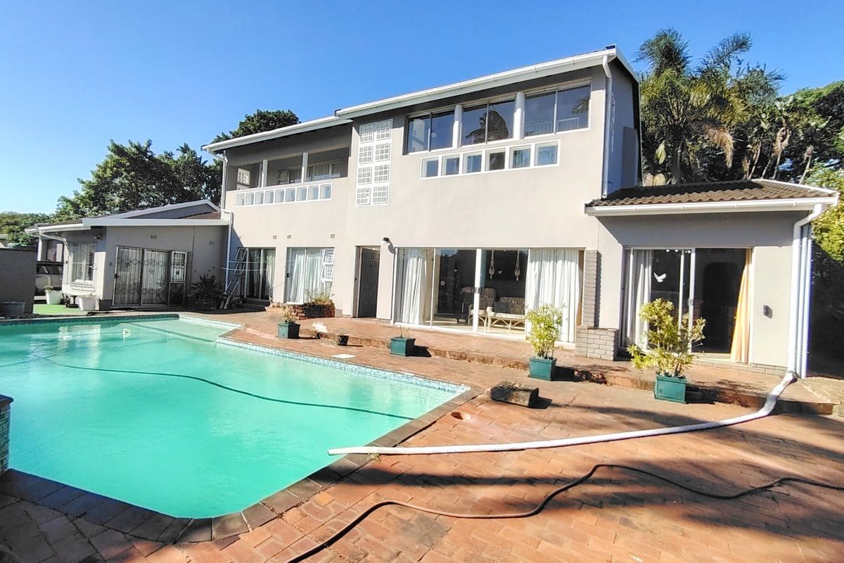 Sun-soaked coastal entertainer in Uvongo, between Margate and Shelly Beach, seven-bedroom home with chef's kitchen, massive pool and jacuzzi, built-in braai, fruit garden and four garages.