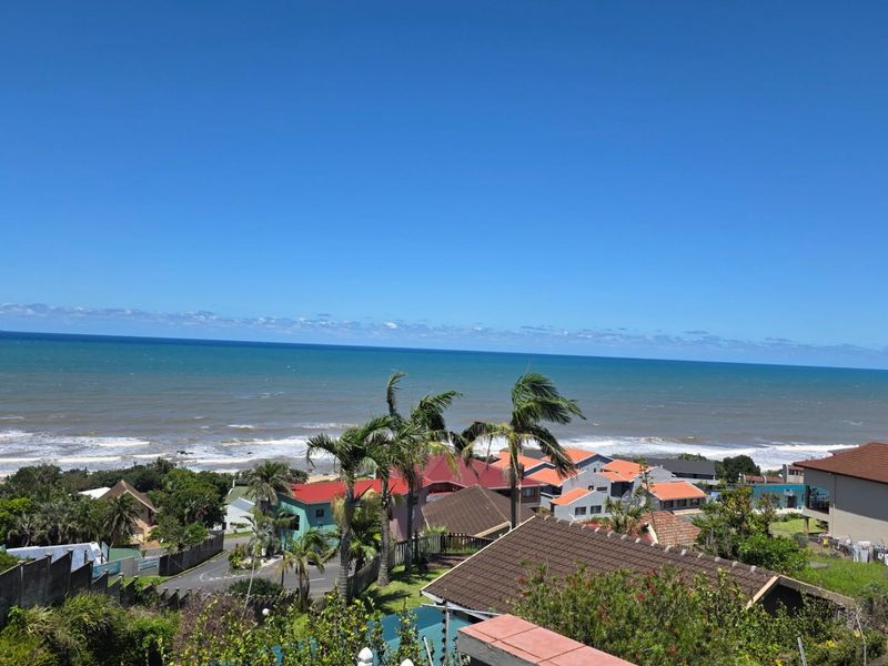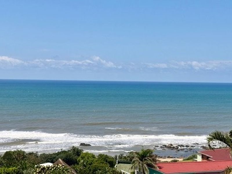 Seaside entertaining and relaxed coastal living in Uvongo, walking distance to the beach, expansive patio with built-in braai and bar, pool, ocean-view main bedroom; three bedrooms, two baths.