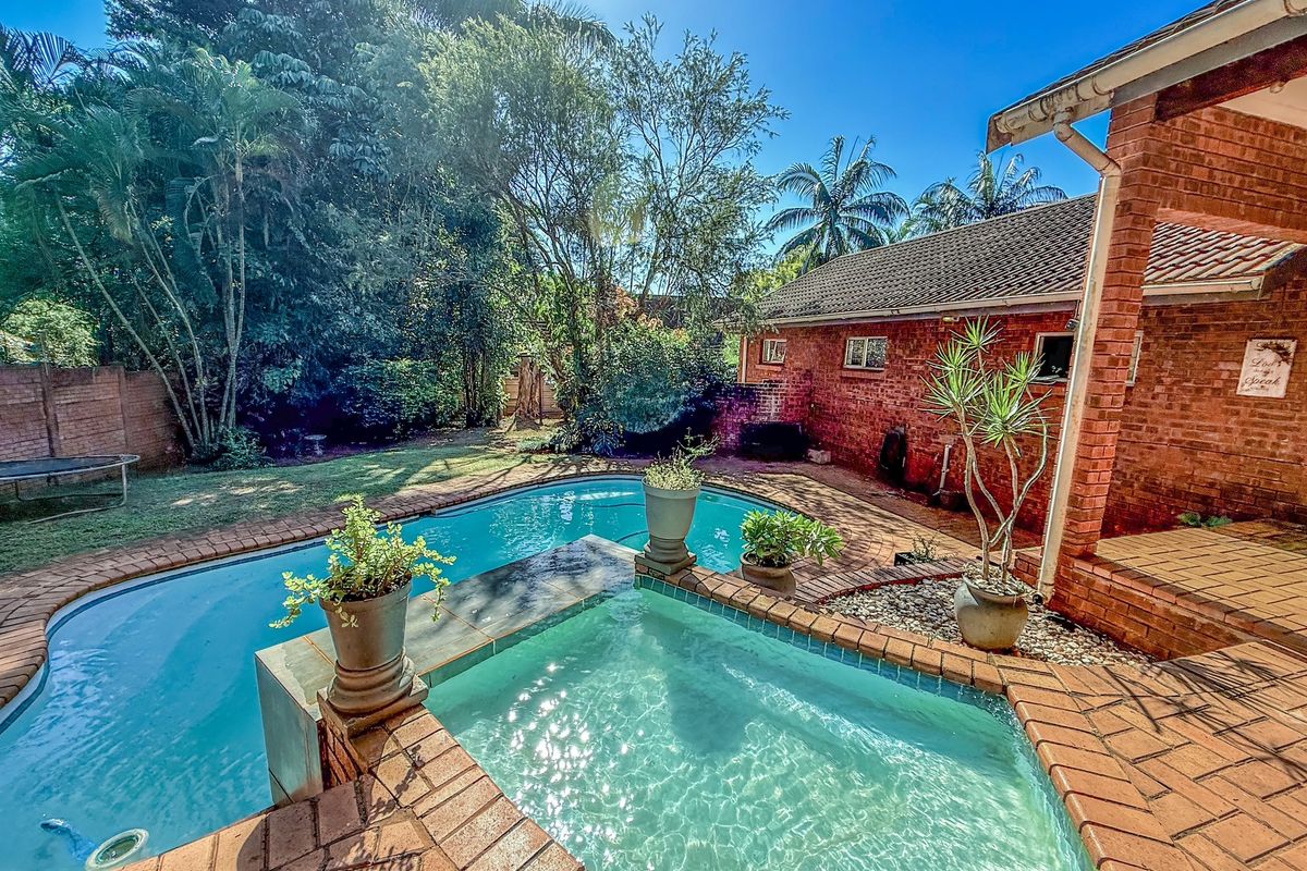Coastal family living in Mtunzini with effortless entertaining—undercover patio overlooking a double pool and established garden. Includes four bedrooms and 3.5 bathrooms, plus income flat.