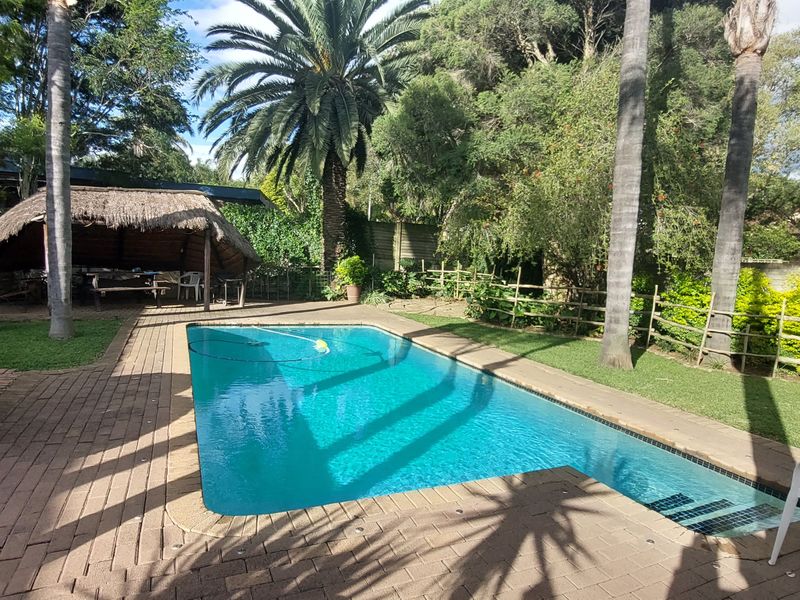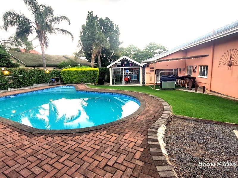 Indoor-outdoor entertainer's home in sought-after Aviary Hill, featuring a sparkling pool; five bedrooms, optional flatlet and three garages, set on a generous, secure plot.