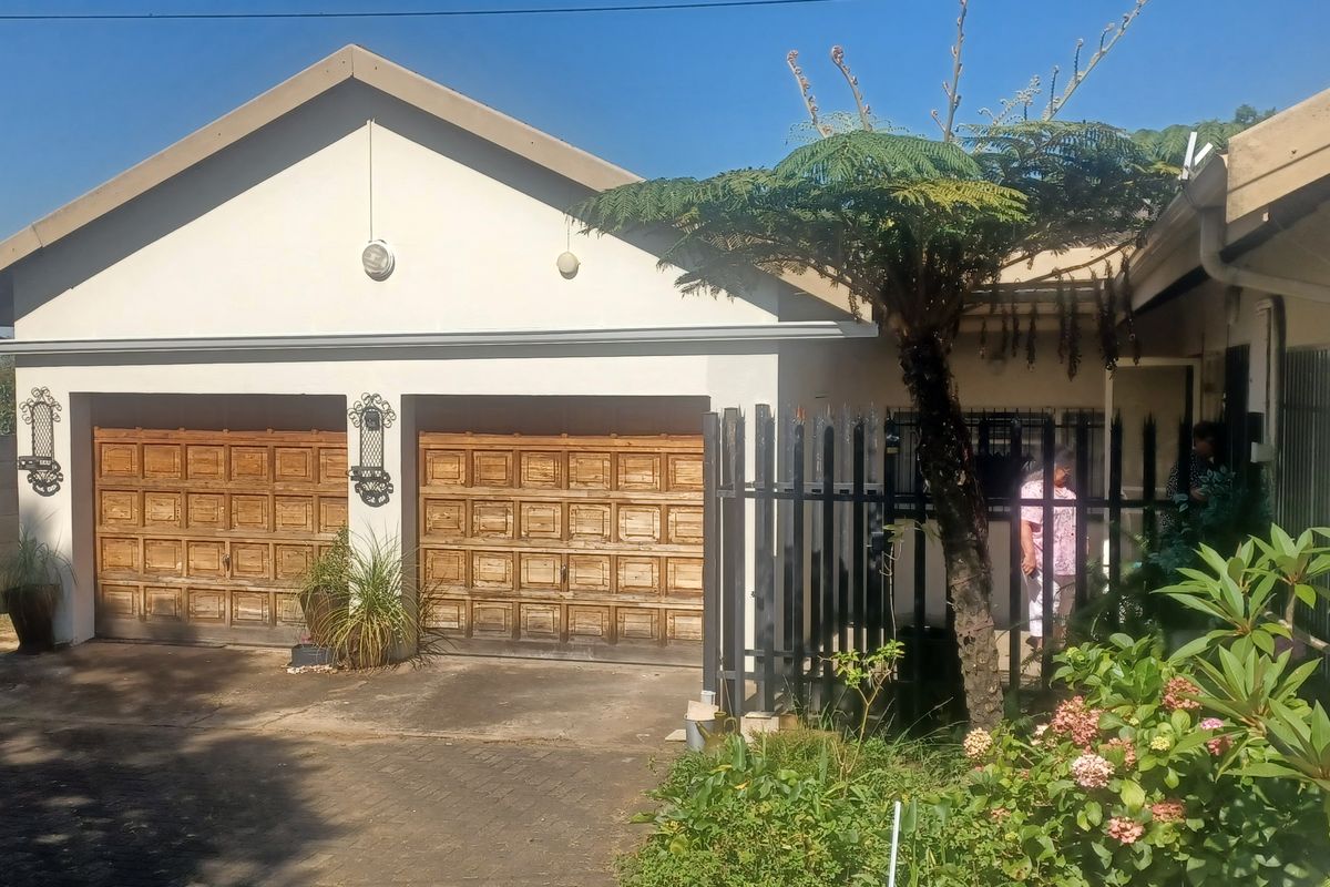 This charming home is nestled in a peaceful neighborhood, surrounded by a beautiful garden. It features a spacious TV lounge that seamlessly flows into a large kitchen complete with a pantry and scullery. The lounge and dining room are distinct spaces, offering versatility, with built-in cupboards in the dining area.