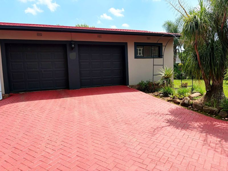 Family-focused living with private entertaining space and reliable services in popular Hutten Heights, Newcastle, featuring a fitted kitchen, borehole, four bedrooms and two garages.