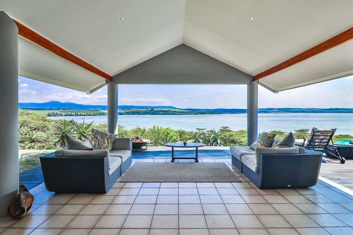 Dam-side living overlooking Albert Falls Dam, minutes from Pietermaritzburg. Poolside entertaining and five-star open-plan kitchen; three bedrooms, three baths and four covered parking.