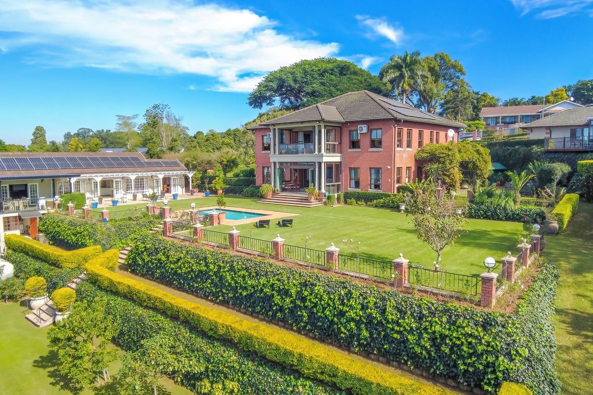 Host grand gatherings in Athlone, Pietermaritzburg, with panoramic city views; private pool and jacuzzi, ballroom-sized master suite, seven bedrooms, six bathrooms and seven-car garaging.