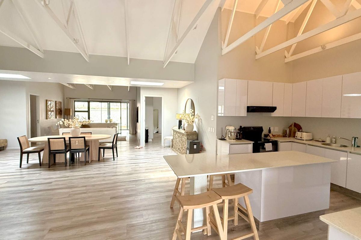 The kitchen is modern and functional, with clean finishes and a central island that works well for both meal preparation and informal entertaining. A separate scullery leads to a private courtyard, providing a practical outdoor extension of the kitchen and a sheltered area for outdoor dining.