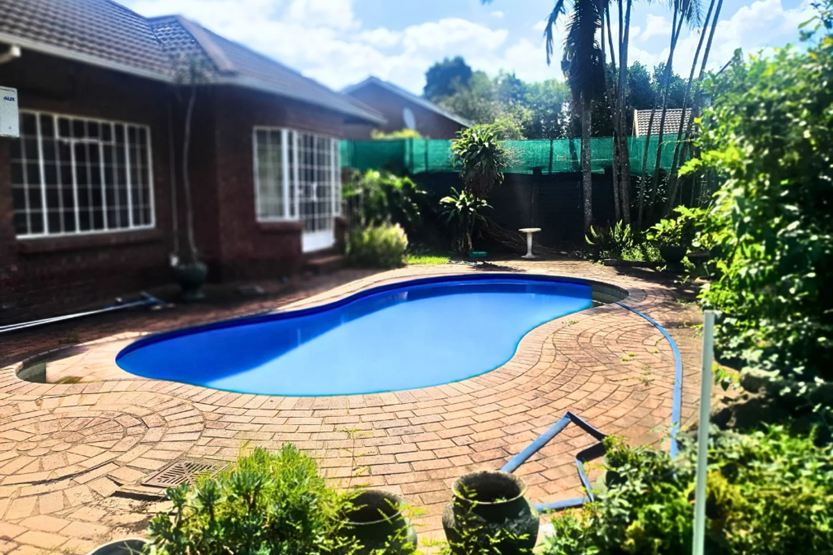 Outdoors, the property unfolds into a tranquil garden setting with a swimming pool and a dedicated braai area, perfectly suited for relaxed weekends and memorable gatherings. An inviting entertainment area further enhances the home’s lifestyle appeal, creating the ideal space for hosting family and friends. A tennis court adds a rare recreational feature, while the fully enclosed grounds provide privacy and peace of mind.