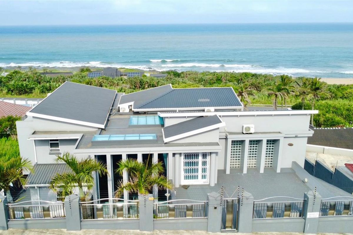 Live coastal luxury moments from the beach with panoramic sea views, pool and built-in braai entertaining area, modern granite kitchen and five ensuite bedrooms.