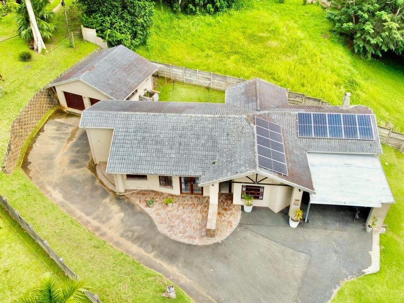 Enjoy relaxed coastal-country living in elevated Umtentweni, moments from beaches, on a sprawling 7028 m² erf with pool, separate two-bedroom flat and three garages.